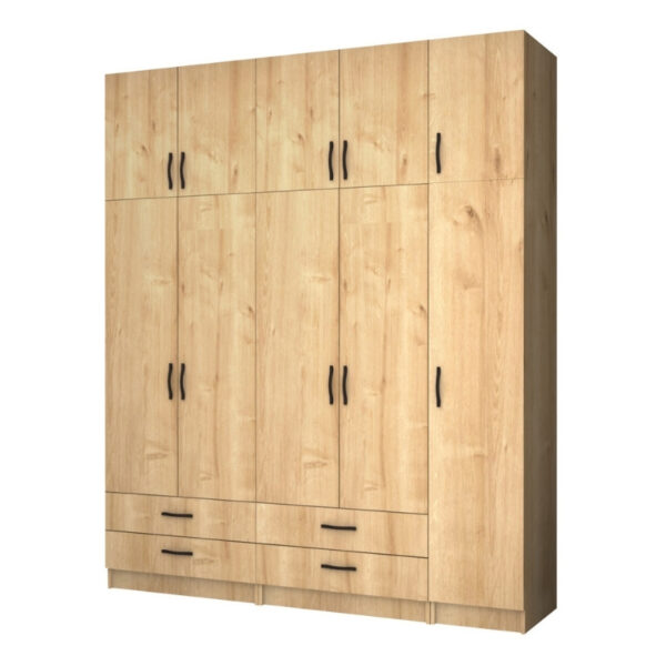 Ντουλάπα ρούχων Ricardo Megapap πεντάφυλλη με συρτάρια χρώμα φυσικό οξιάς 200×51,8×181εκ.