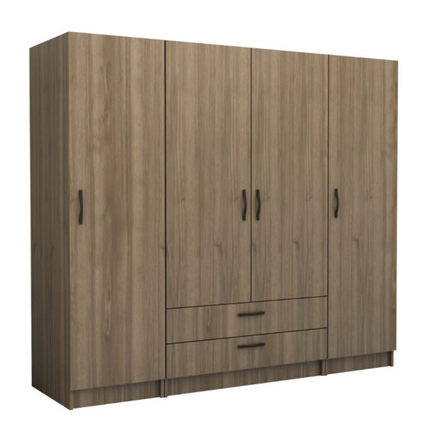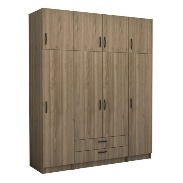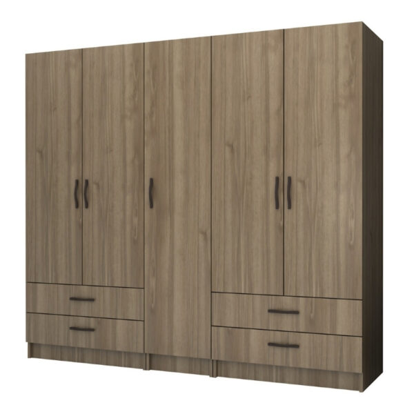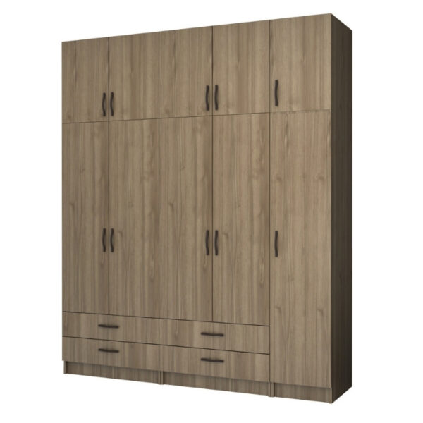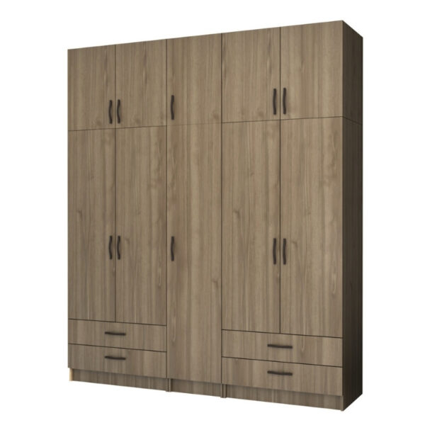 Ντουλάπα ρούχων Ricardo Megapap πεντάφυλλη με συρτάρια χρώμα καρυδί 200×51,8×181εκ.