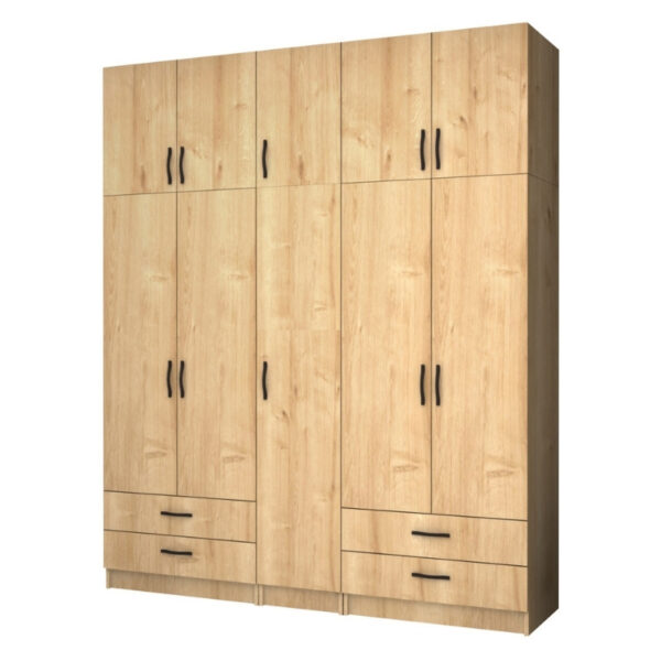 Ντουλάπα ρούχων Ricardo Megapap εξάφυλλη με πατάρι και συρτάρια χρώμα φυσικό οξιάς 240×51,8×240εκ.