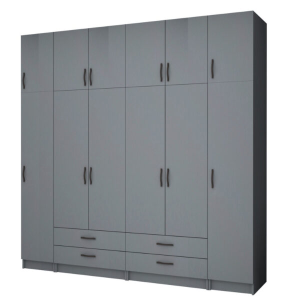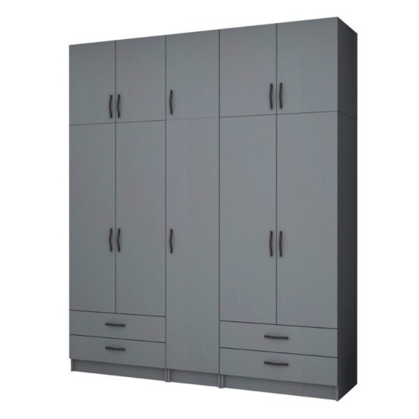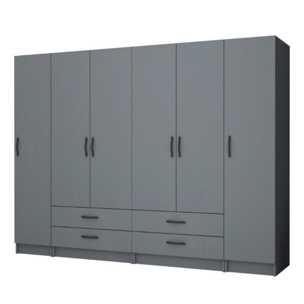 Ντουλάπα ρούχων Ricardo Megapap εξάφυλλη με συρτάρια χρώμα ανθρακί 240×51,8×181εκ.