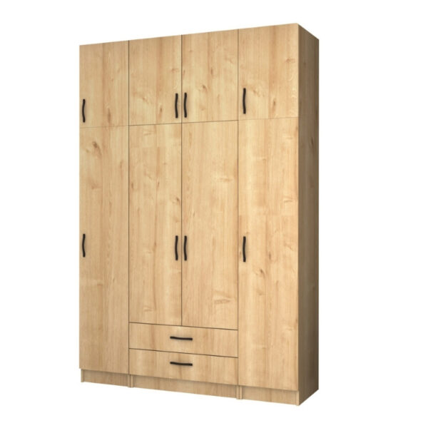 Ντουλάπα ρούχων Ricardo Megapap τετράφυλλη με πατάρι και συρτάρια χρώμα φυσικό οξιάς 160×51,8×240εκ.