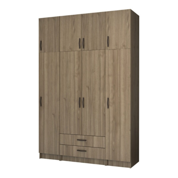 Ντουλάπα ρούχων Ricardo Megapap τετράφυλλη με πατάρι και συρτάρια χρώμα καρυδί 160×51,8×240εκ.