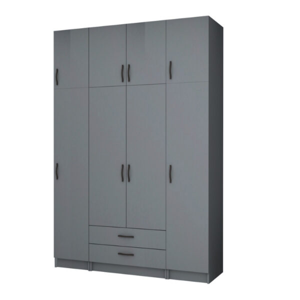 Ντουλάπα ρούχων Ricardo Megapap τετράφυλλη με πατάρι και συρτάρια χρώμα ανθρακί 160×51,8×240εκ.