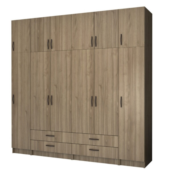Ντουλάπα ρούχων Ricardo Megapap εξάφυλλη με πατάρι και συρτάρια χρώμα καρυδί 240×51,8×240εκ.