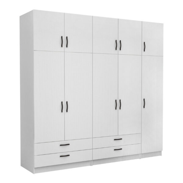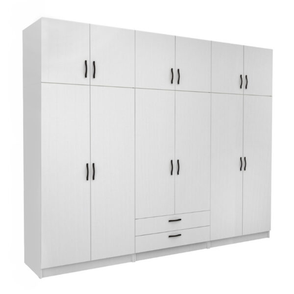 Ντουλάπα ρούχων Victoria Megapap εξάφυλλη με πατάρι και συρτάρια χρώμα λευκό 300x60x240εκ.