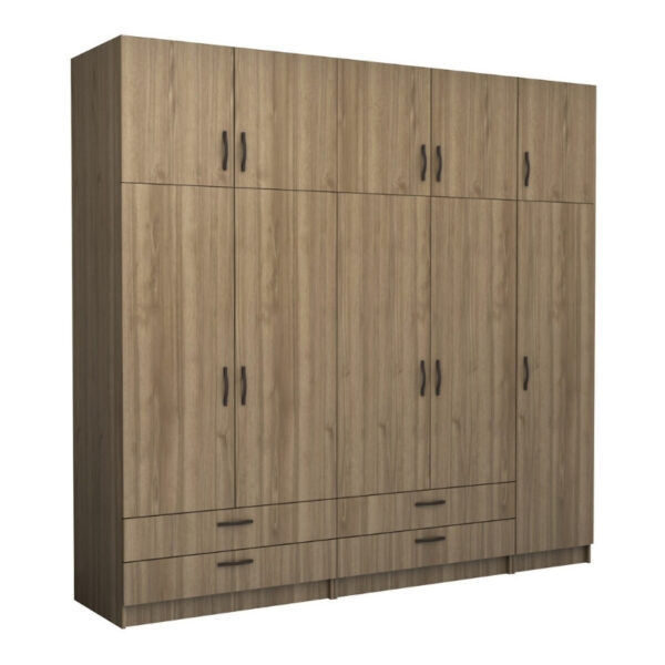 Ντουλάπα ρούχων Ricardo Megapap πεντάφυλλη με πατάρι και συρτάρια χρώμα καρυδί 200×51,8×240εκ.