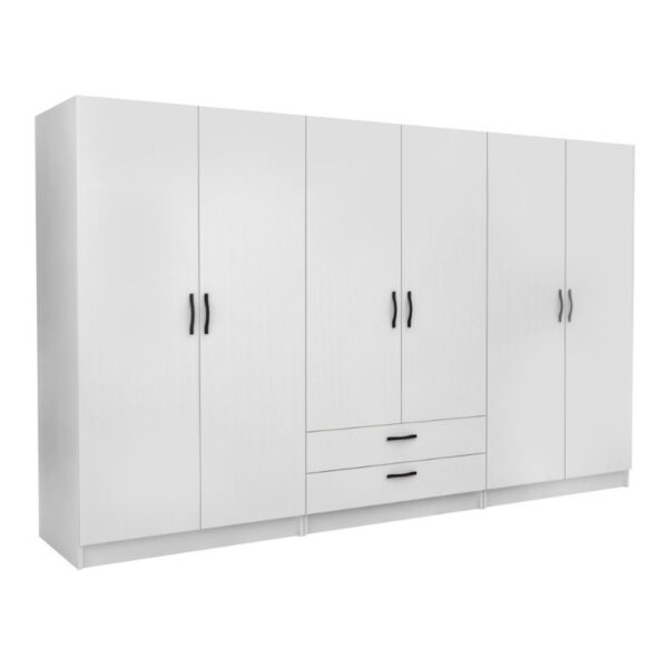Ντουλάπα ρούχων Victoria Megapap εξάφυλλη με συρτάρια χρώμα λευκό 300x60x181εκ.