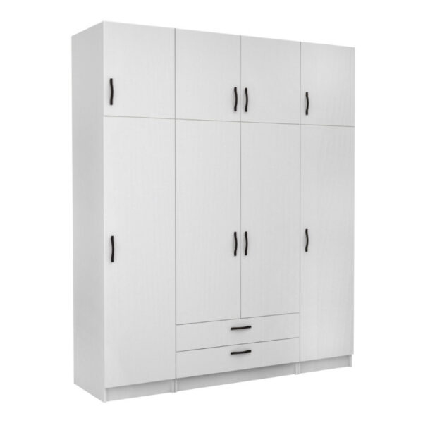 Ντουλάπα ρούχων Victoria Megapap τετράφυλλη με πατάρι και συρτάρια χρώμα λευκό 200x60x240εκ.