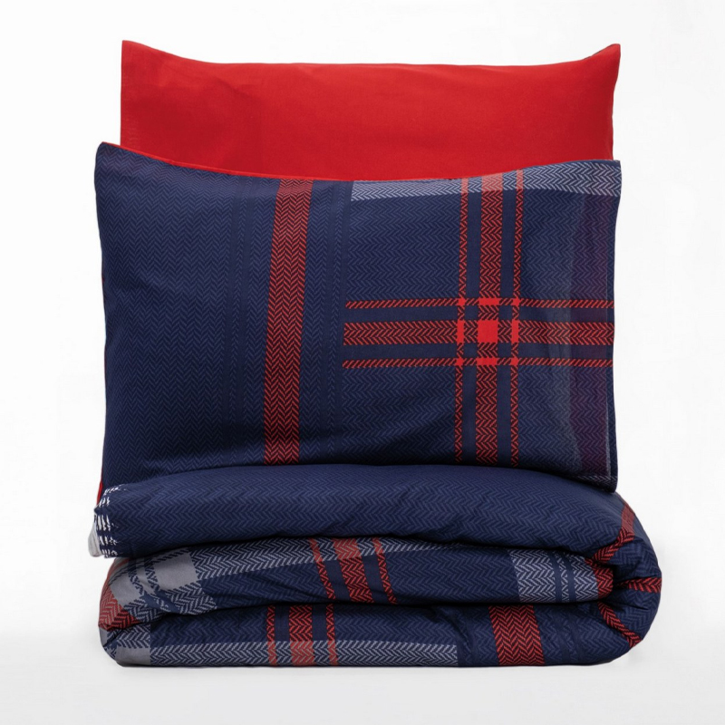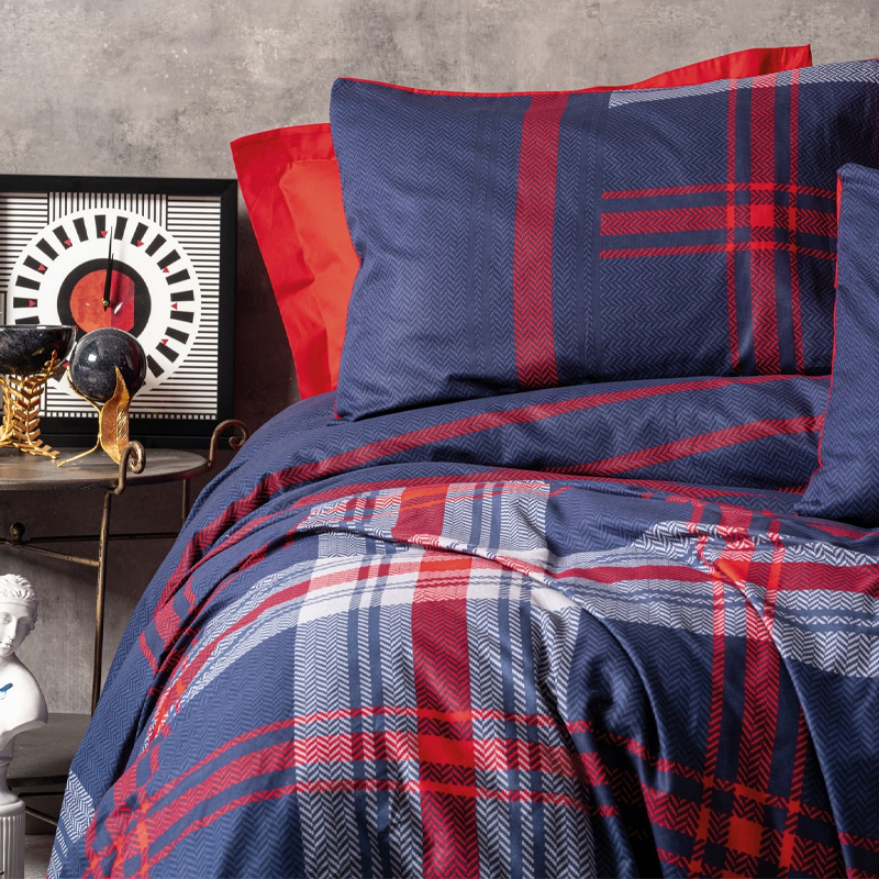 Σετ παπλωματοθήκη Abel Cotton Box 4 τμχ Διπλή (200×220) χρώμα σκούρο μπλε – κόκκινο
