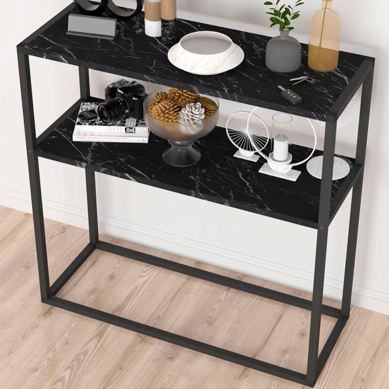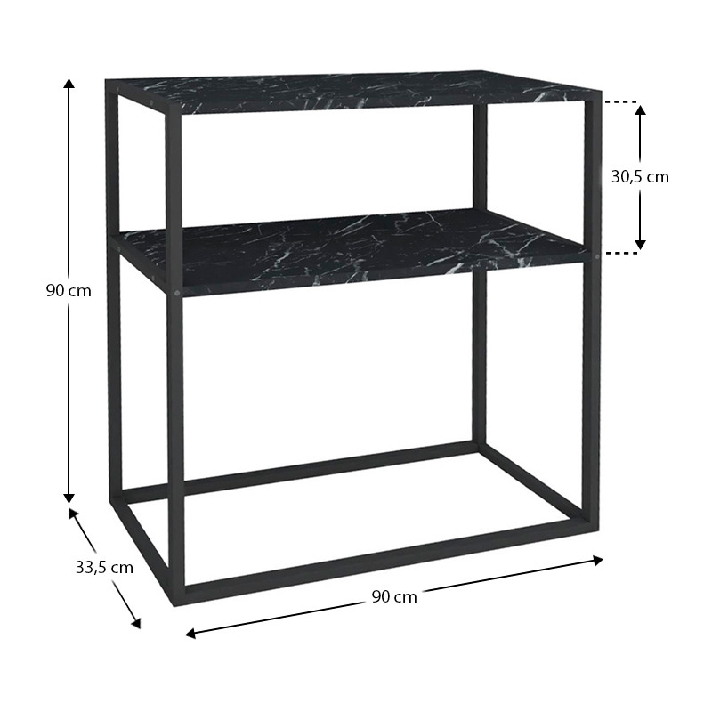 Κονσόλα Castel Megapap μεταλλική – μελαμίνης χρώμα μαύρο εφέ μαρμάρου 90×33,5×90εκ.