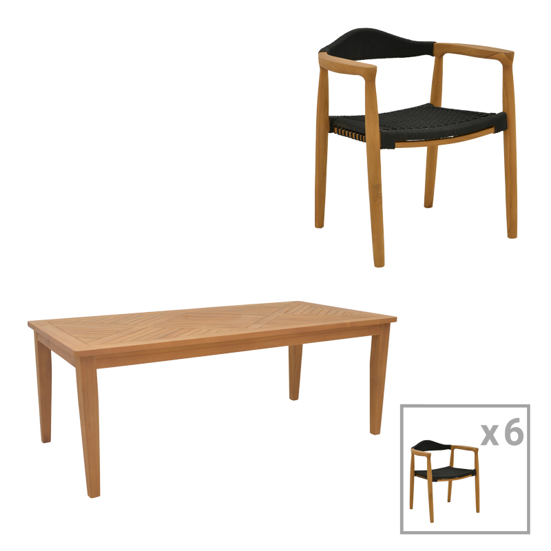 Τραπεζαρία σετ 7τεμ. Ganny-Mady pakoworld teak ξύλο σε φυσική-μαυρη απόχρωση 200x100x75εκ