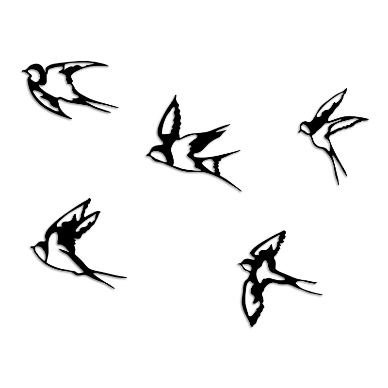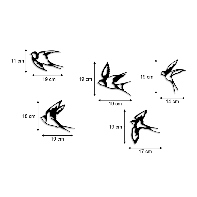 - Το προϊόν αποτελείται από πέντε τεμάχια μεταλλικών χελιδονιών τα οποία μπορείτε να τοποθετήσετε όπως επιθυμείτε.