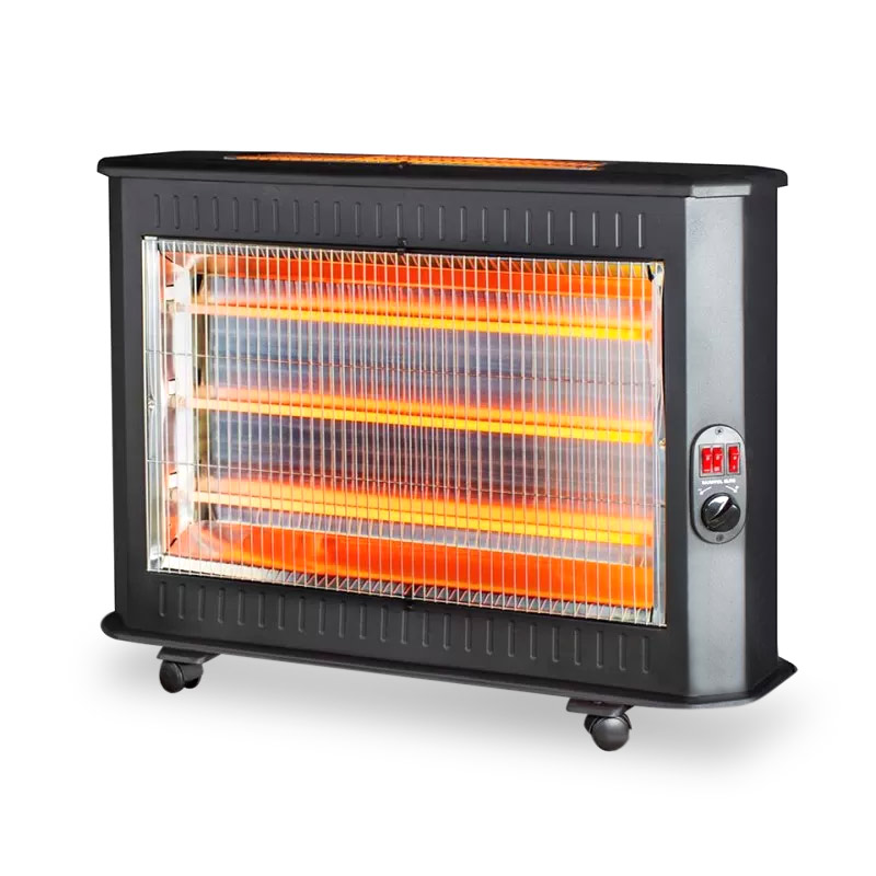 • Διαθέτει 5 λάμπες χαλαζία: 3 μπρος και 2 στο επάνω μέρος για καλύτερη κατανομή της θερμότητας σε όλο το χώρο.