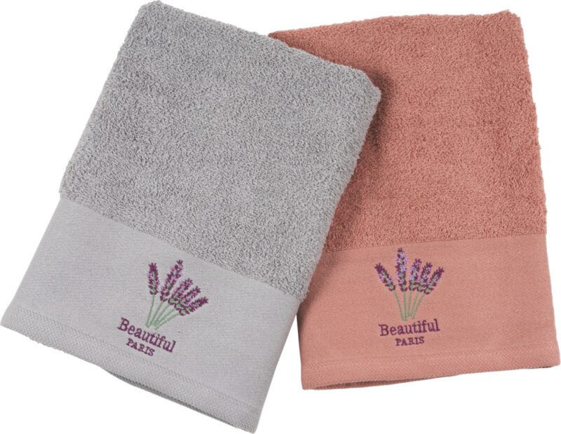 Σετ πετσέτα 3τμχ με κέντημα στη φάσα Σx. Lavender σε συσκευασία pvc 430 gsm 100% cotton