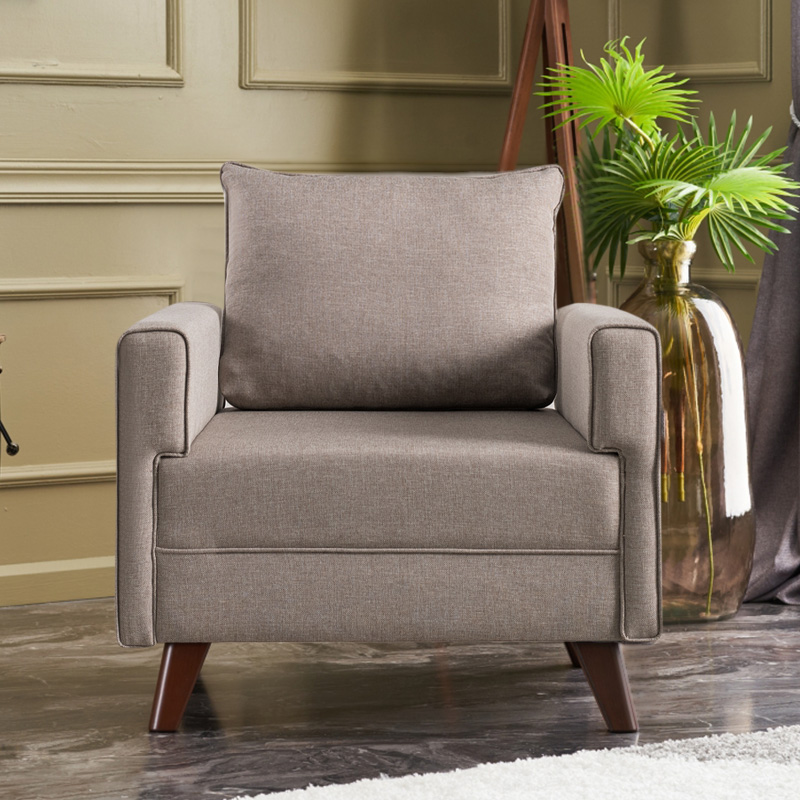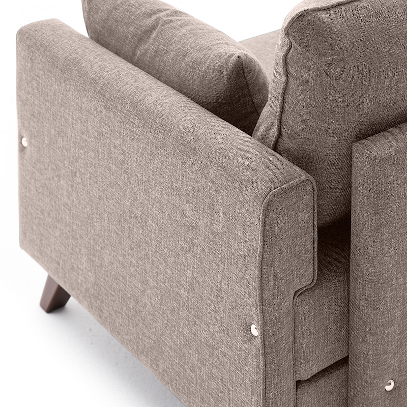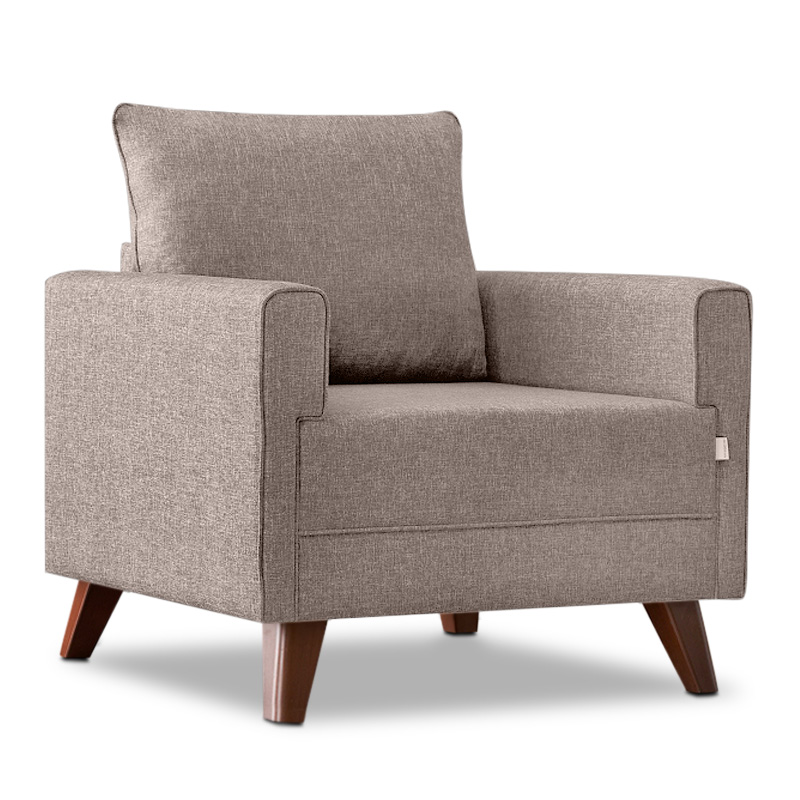 • Φέρει πόδια από πολυπροπυλένιο, ειδικά σχεδιασμένο για καναπέδες, με ξύλινη εμφάνιση σε καρυδί χρώμα.