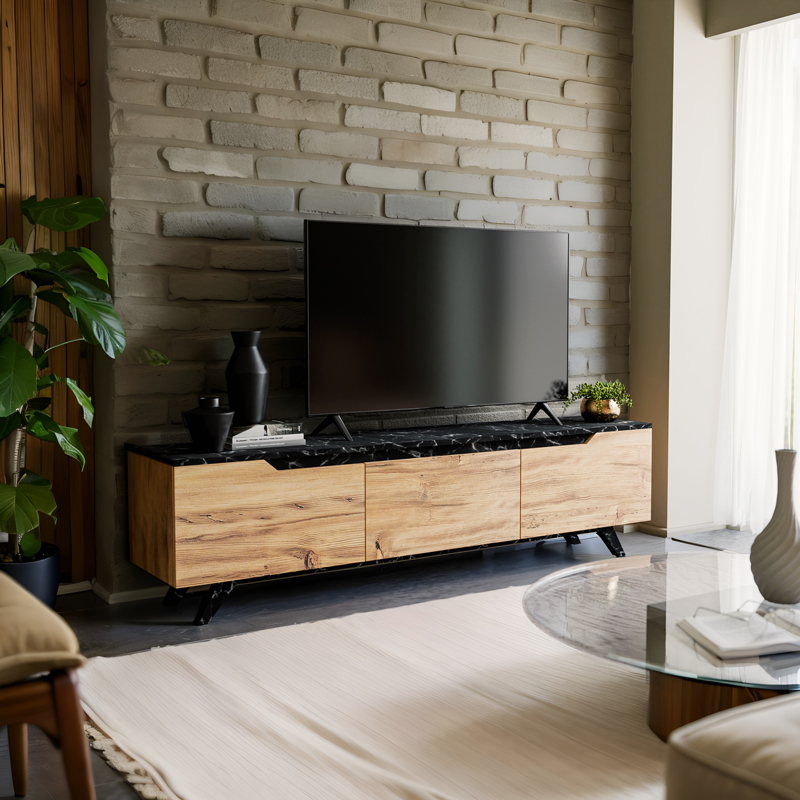 Έπιπλο τηλεόρασης Kasandra pakoworld μαύρο μαρμάρου-ανοικτό καρυδί 180x35x48.3εκ