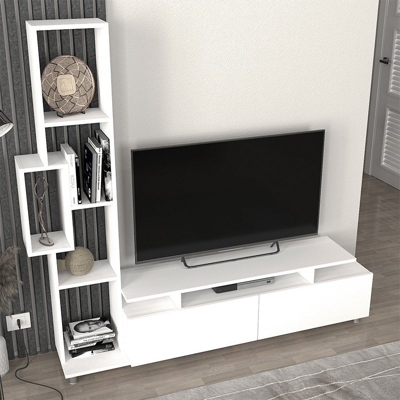 Σύνθεση τηλεόρασης Tulip Megapap από μελαμίνη χρώμα λευκό 160×29,5×160εκ.