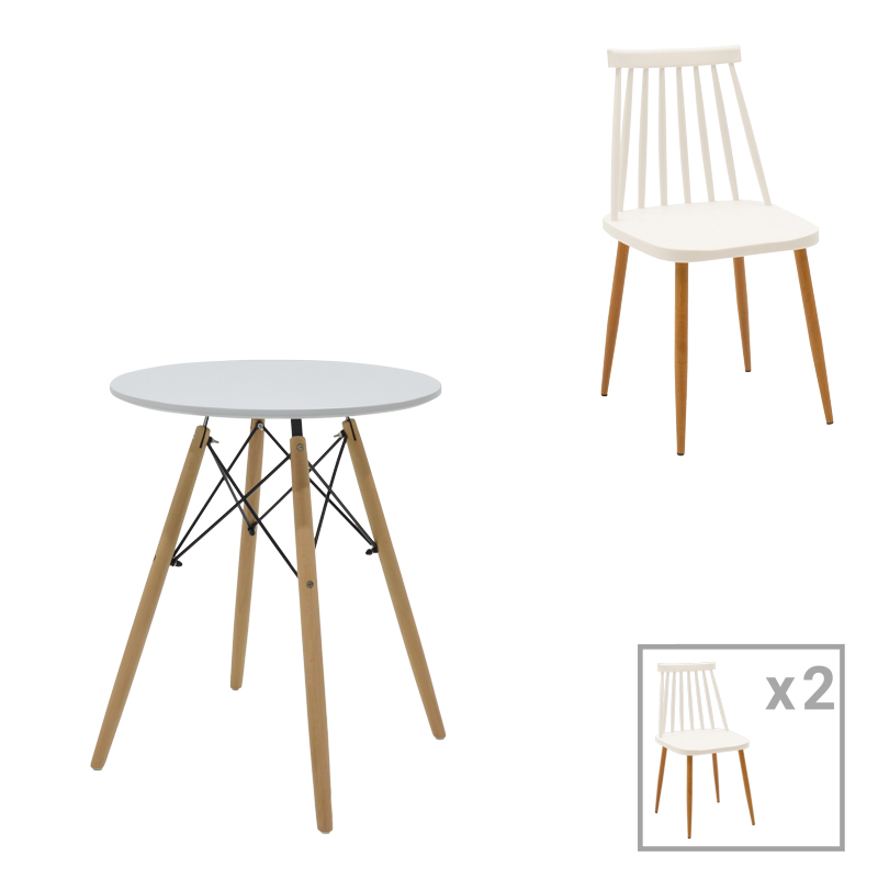 Τραπεζαρία Aurora-Julita pakoworld σετ 3τεμ pp-mdf σε λευκό-φυσική απόχρωση Φ60×73εκ