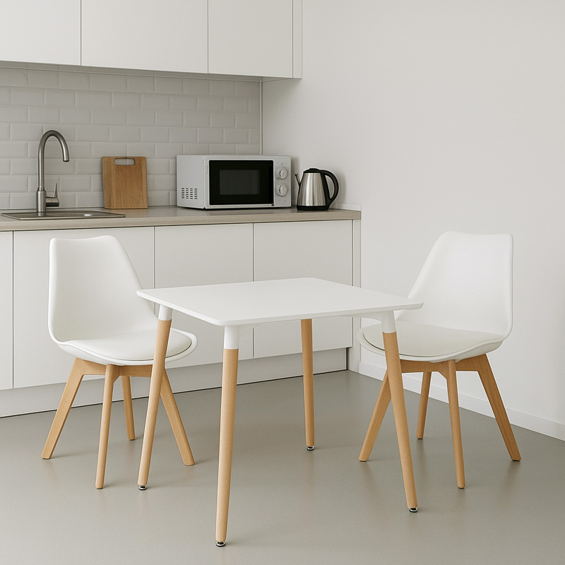 Τραπέζι Natali pakoworld MDF λευκό-πόδια φυσικό 80x80x76εκ