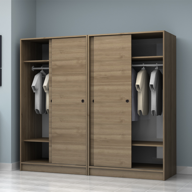 Ντουλάπα ρούχων Regio Megapap τετράφυλλη συρόμενη χρώμα καρυδί 200x60x181εκ.