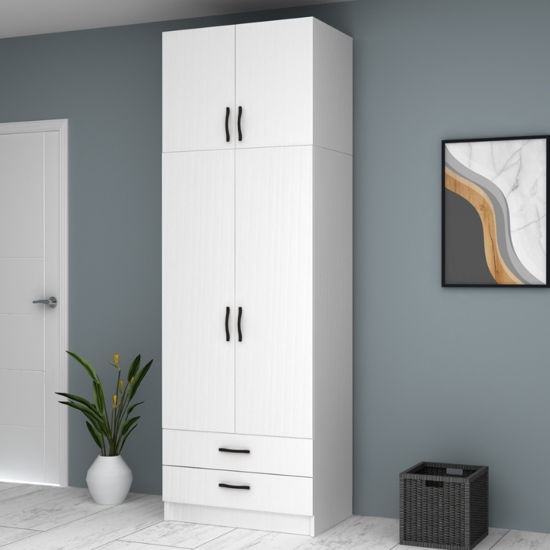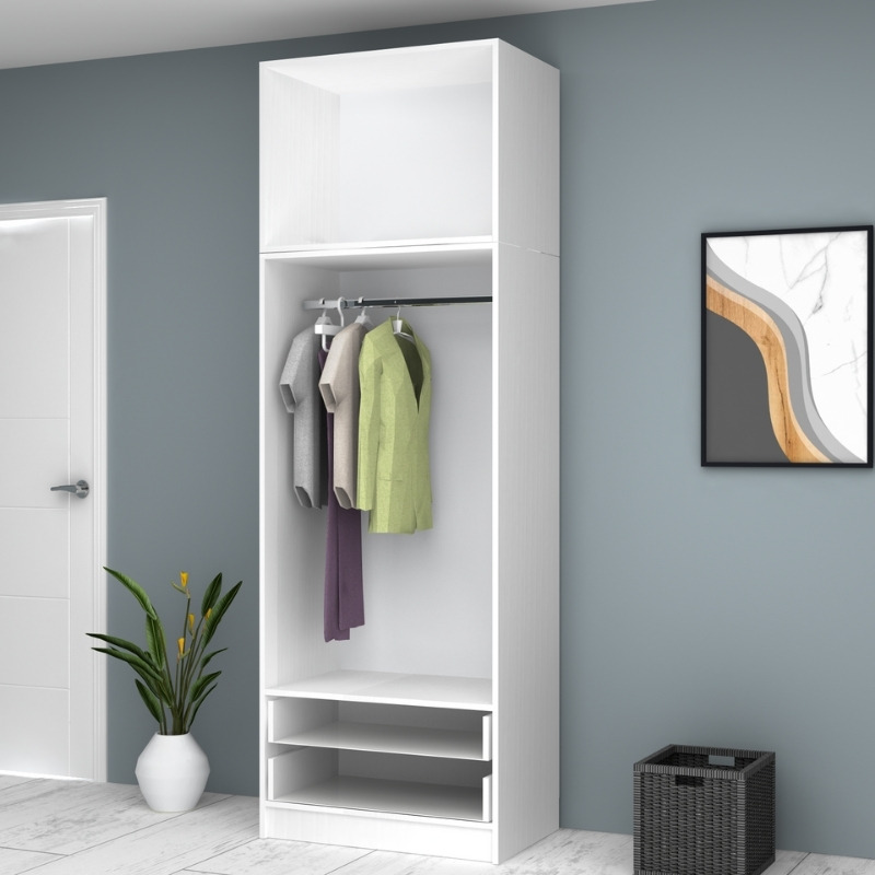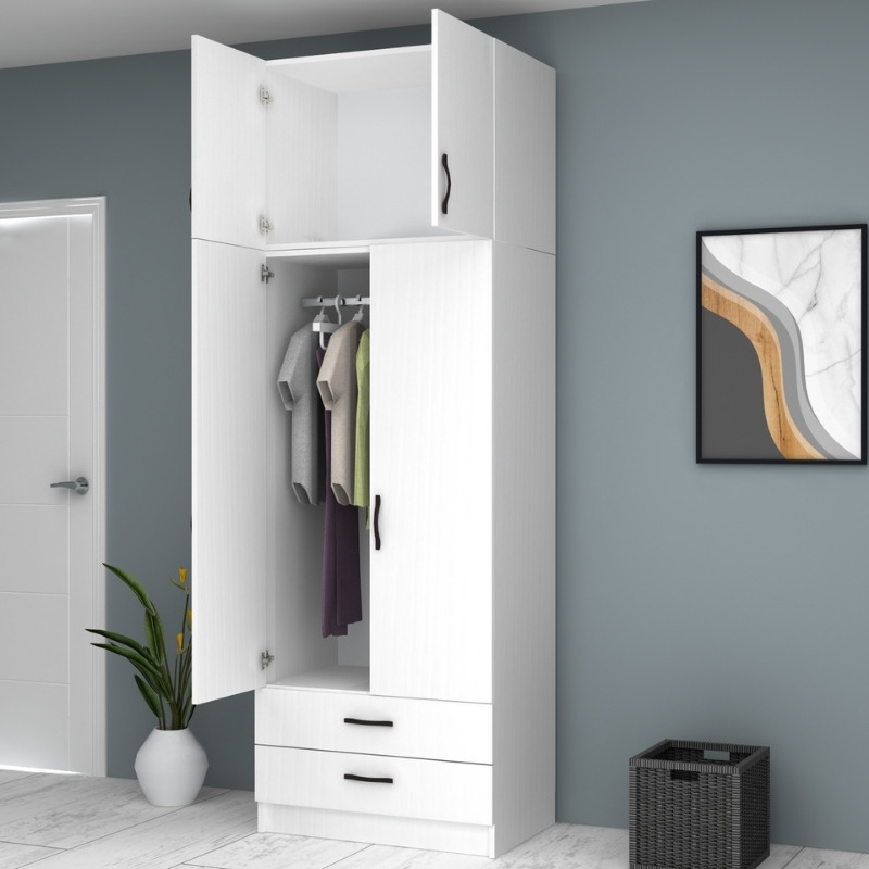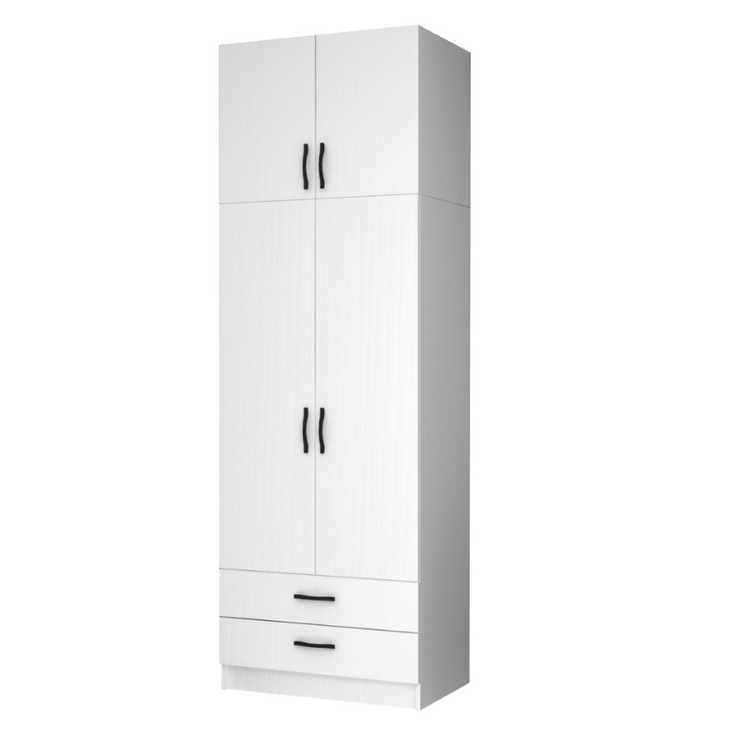 Ντουλάπα ρούχων Ricardo Megapap δίφυλλη με πατάρι και συρτάρια χρώμα λευκό 80×51,8×240εκ.