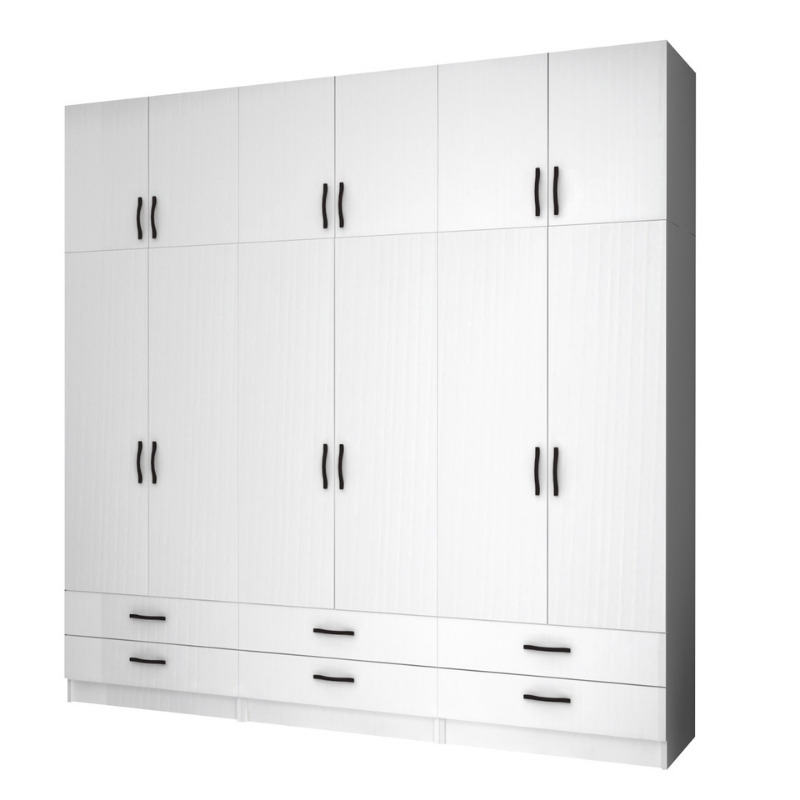 Ντουλάπα ρούχων Ricardo Megapap εξάφυλλη με πατάρι και συρτάρια χρώμα λευκό 240×61,8×240εκ.