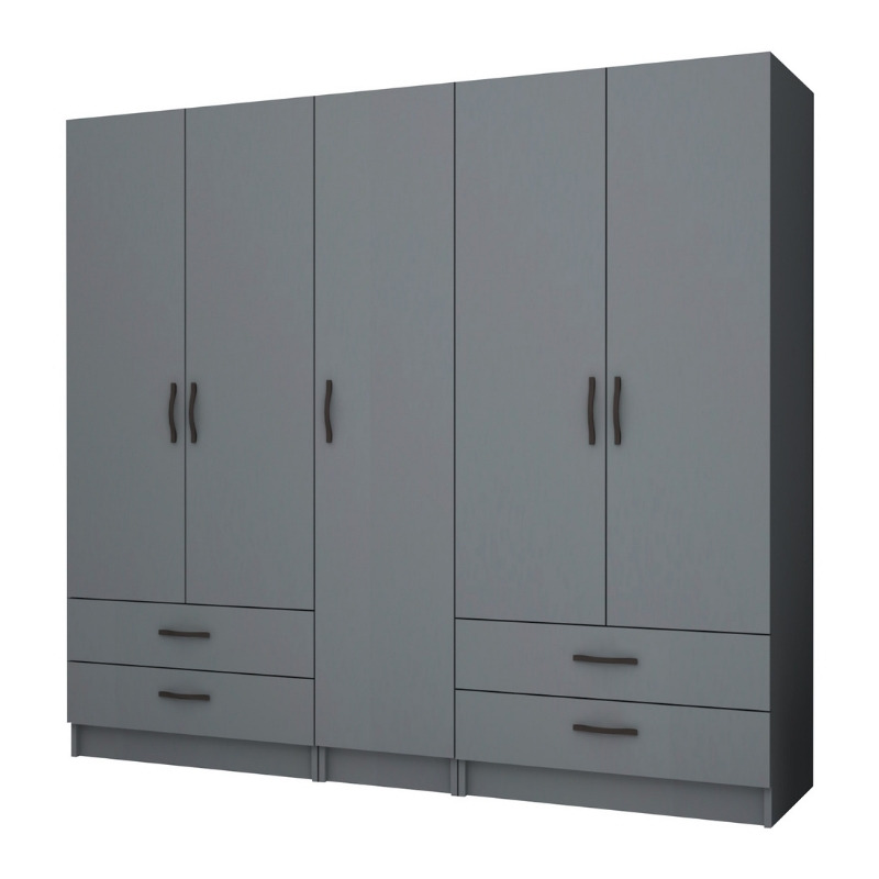 Ντουλάπα ρούχων Ricardo Megapap πεντάφυλλη με συρτάρια χρώμα ανθρακί 200×61,8×181εκ.