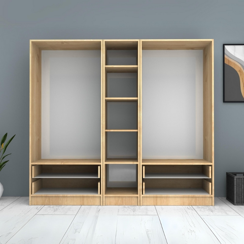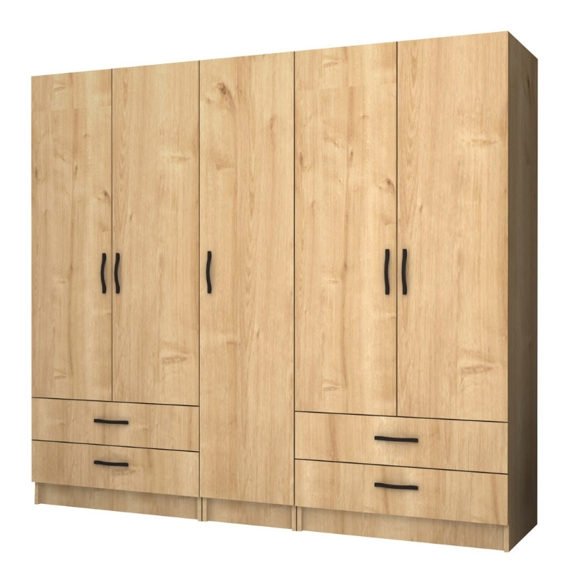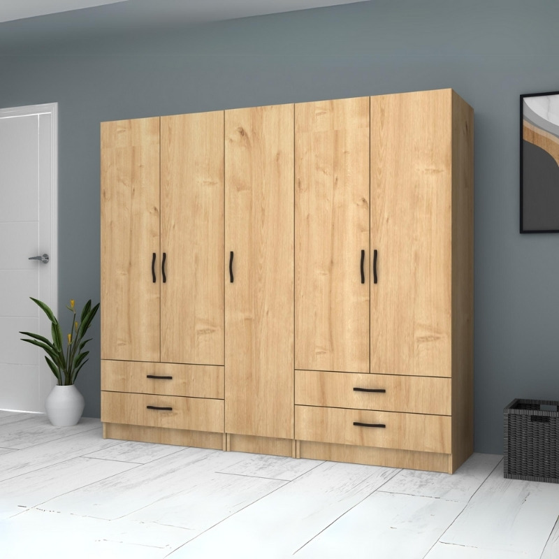 Ντουλάπα ρούχων Ricardo Megapap πεντάφυλλη με συρτάρια χρώμα φυσικό οξιάς 200×61,8×181εκ.