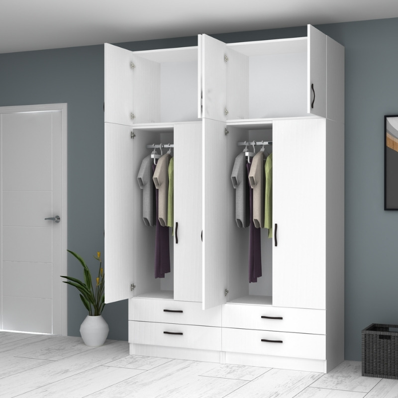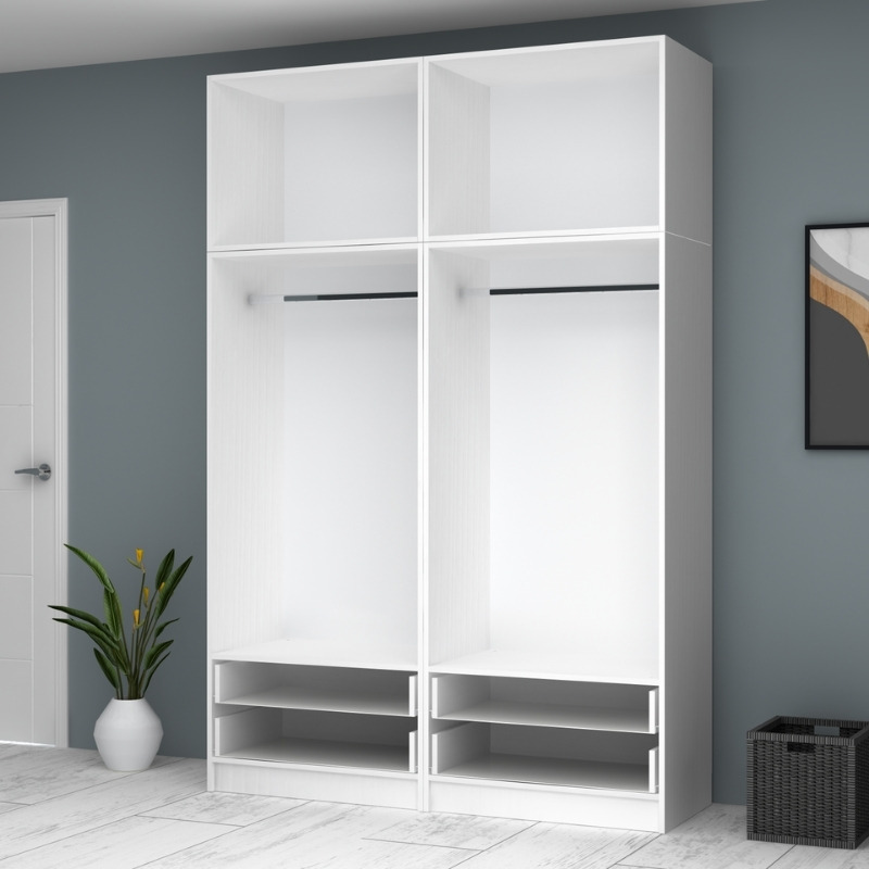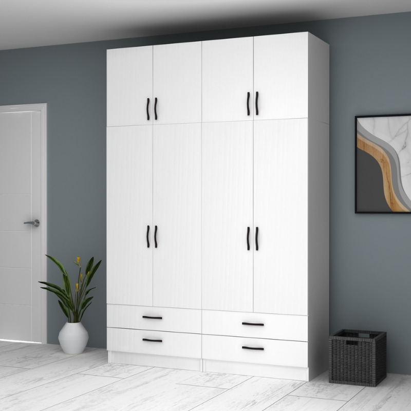 Ντουλάπα ρούχων Ricardo Megapap τετράφυλλη με πατάρι και συρτάρια χρώμα λευκό 160×51,8×240εκ.