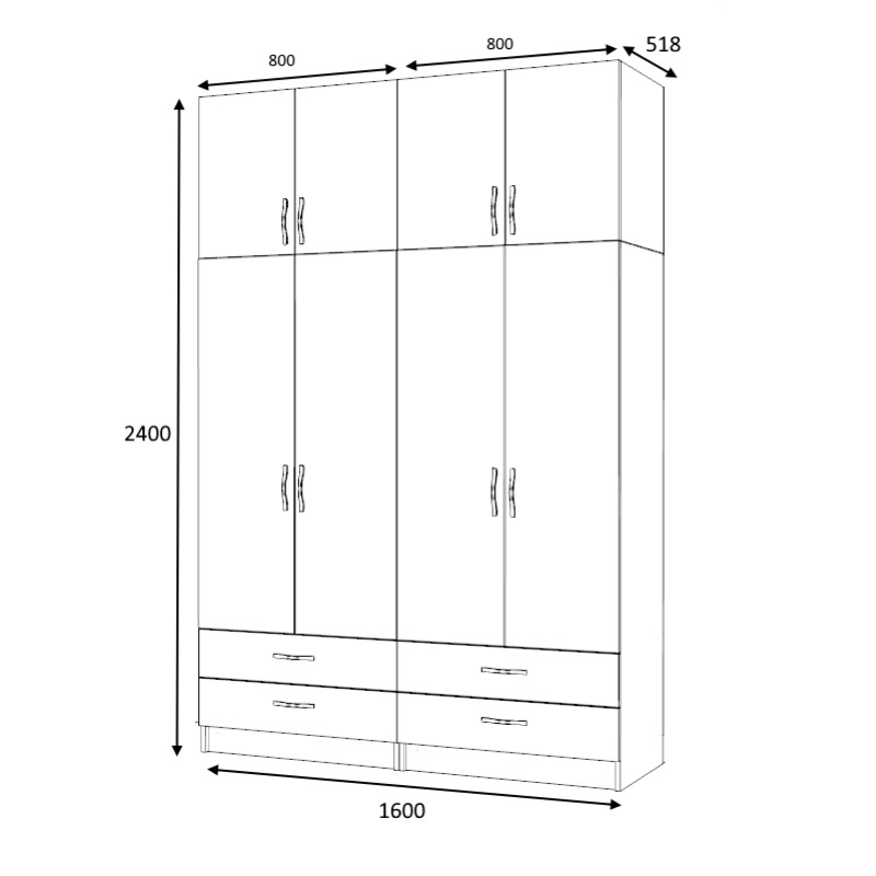 • Διαστάσεις ντουλάπας: Μήκος 160 x Βάθος 51,8 x Ύψος 181 εκ.