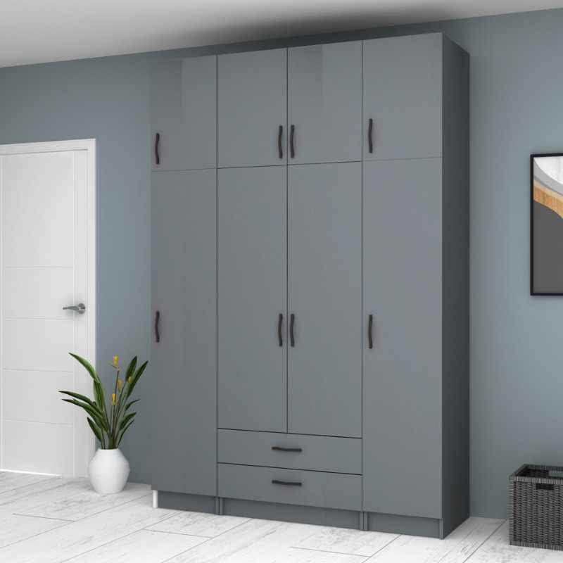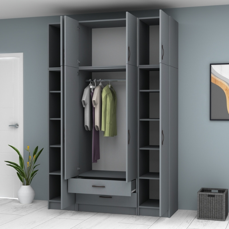 Ντουλάπα ρούχων Ricardo Megapap τετράφυλλη με πατάρι και συρτάρια χρώμα ανθρακί 160×51,8×240εκ.