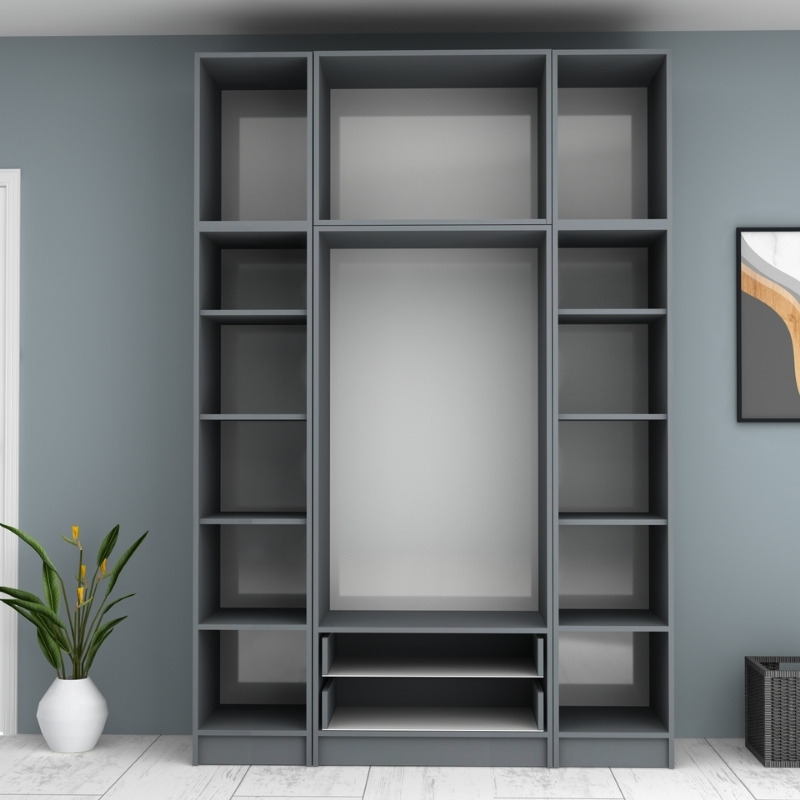 Ντουλάπα ρούχων Ricardo Megapap τετράφυλλη με πατάρι και συρτάρια χρώμα ανθρακί 160×61,8×240εκ.