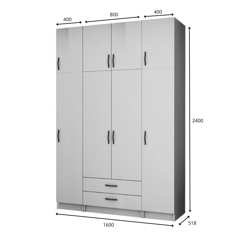 • Διαστάσεις ντουλάπας: Μήκος 160 x Βάθος 51,8 x Ύψος 240 εκ.