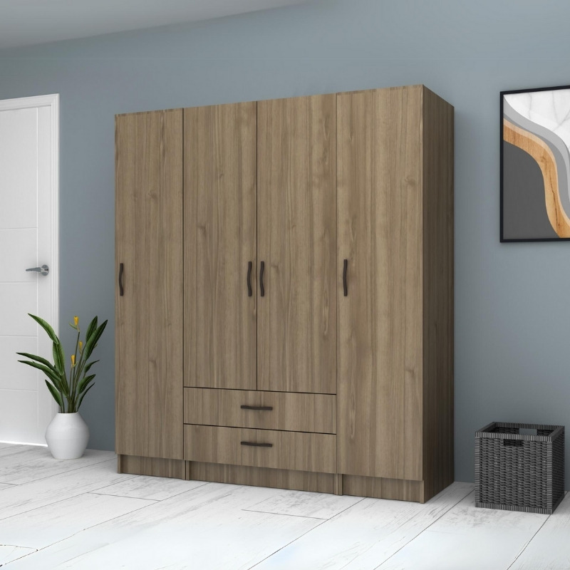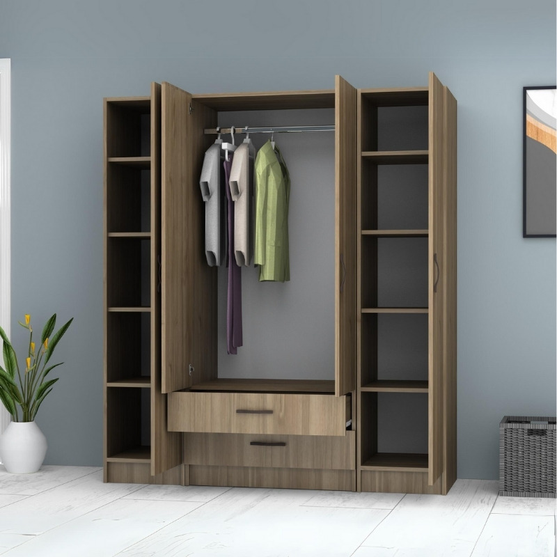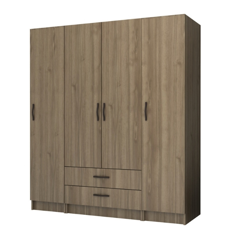 Ντουλάπα ρούχων Ricardo Megapap τετράφυλλη με συρτάρια χρώμα καρυδί 160×61,8×181εκ.