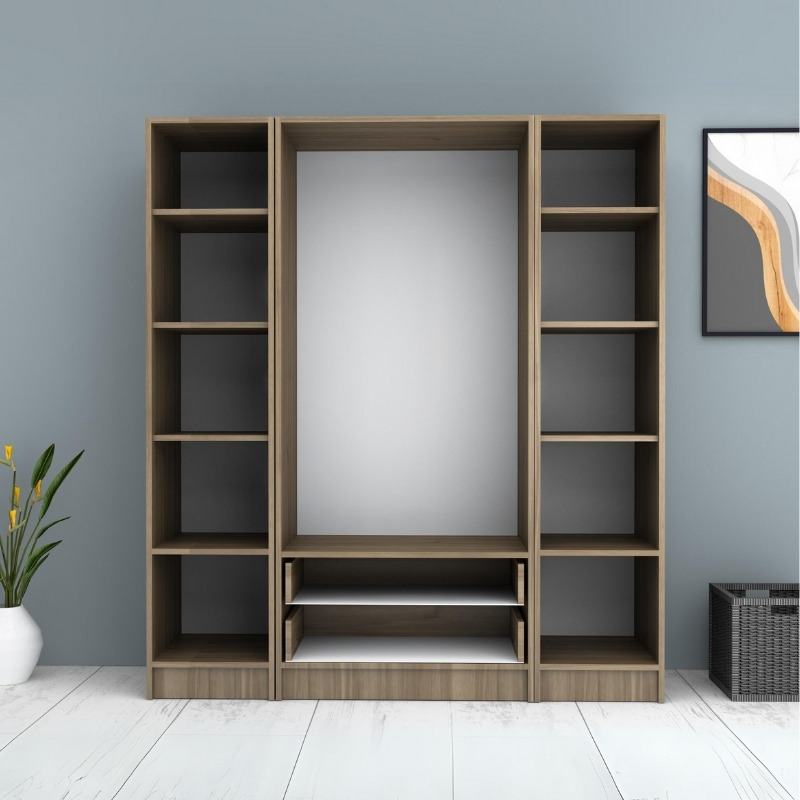 - Στο εσωτερικό της φέρει μία μεταλλική βέργα για κρεμάστρες και ράφια για μεγαλύτερη αποθήκευση. Στο κάτω μέρος φέρει δύο πρακτικά συρόμενα συρτάρια.