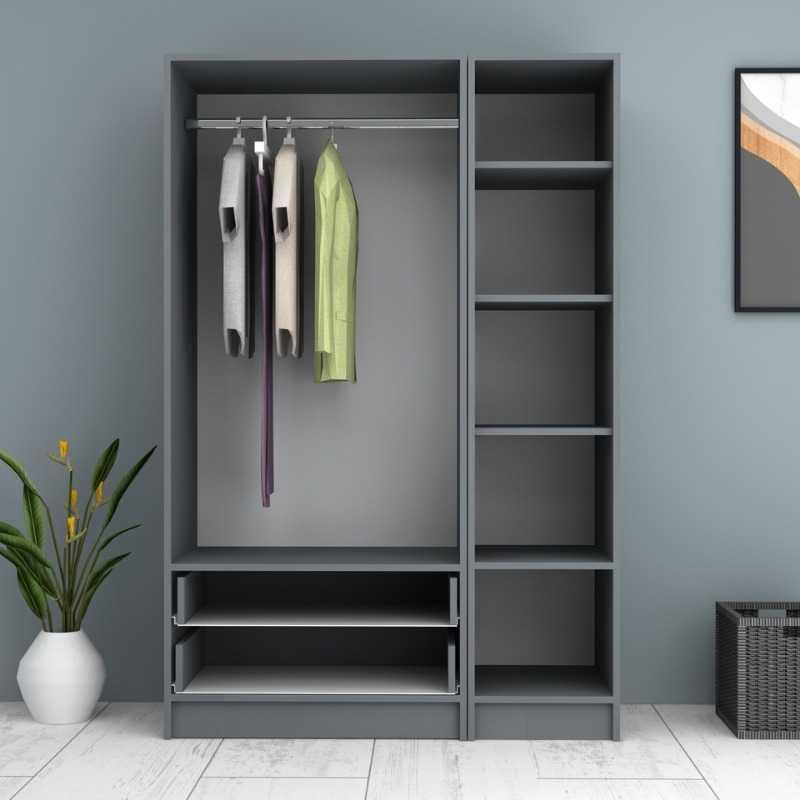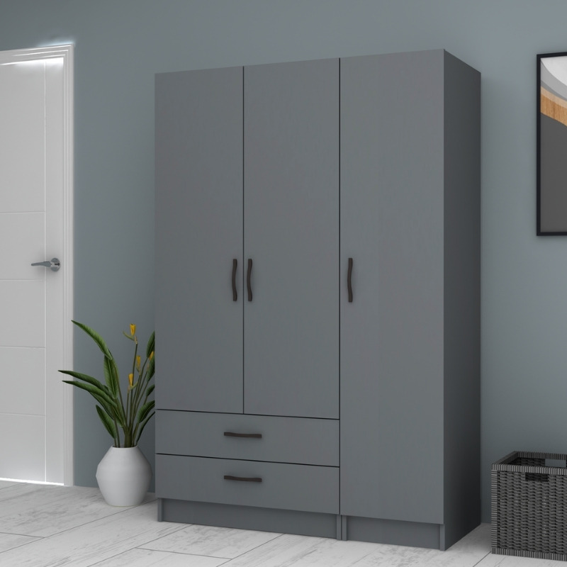 Ντουλάπα ρούχων Ricardo Megapap τρίφυλλη με συρτάρια χρώμα ανθρακί 120×51,8×181εκ.