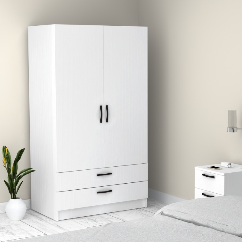 Ντουλάπα ρούχων Victoria Megapap δίφυλλη με συρτάρια χρώμα λευκό 100x60x181εκ.