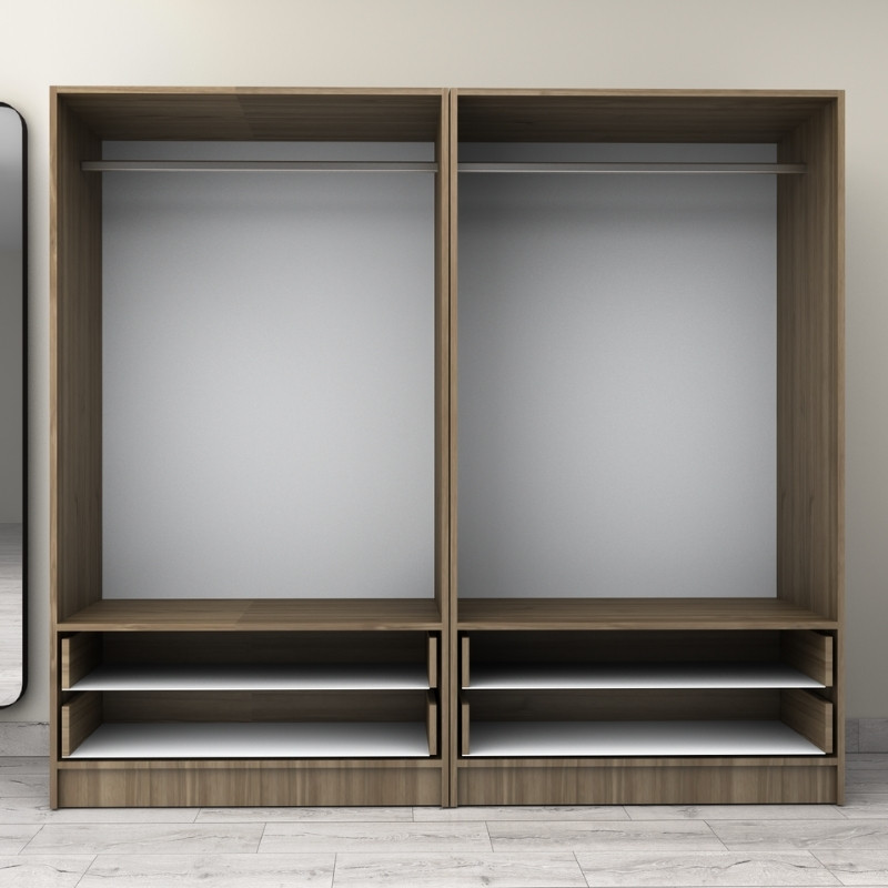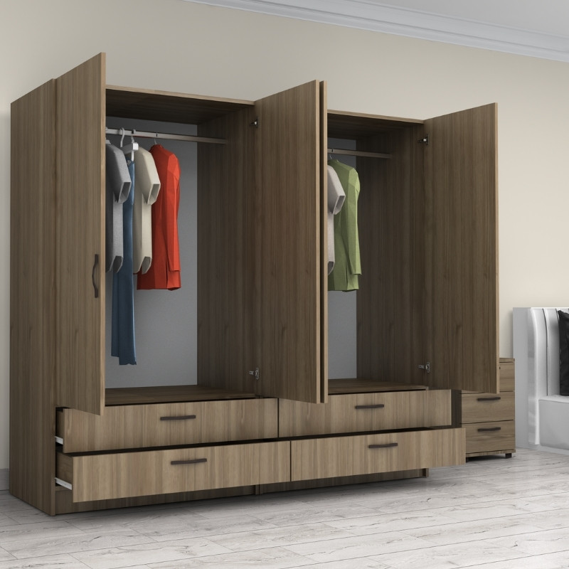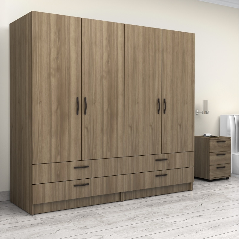 Ντουλάπα ρούχων Victoria Megapap τετράφυλλη με συρτάρια χρώμα καρυδί 200x60x181εκ.