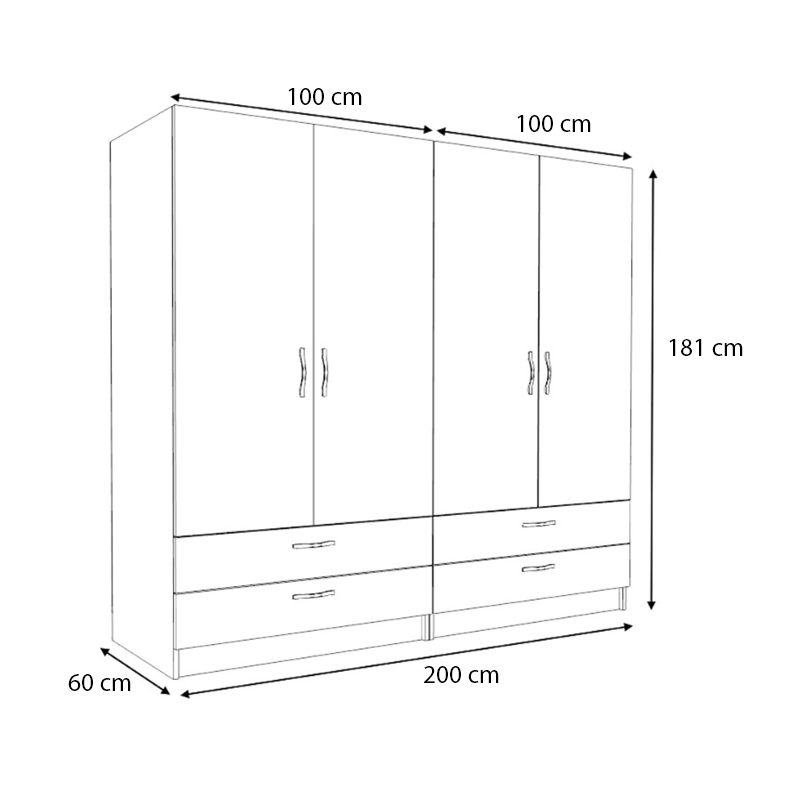 • Διαστάσεις ντουλάπας: Μήκος 200 x Βάθος 60 x Ύψος 181 εκ.