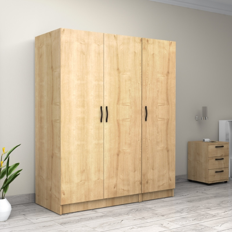 Ντουλάπα ρούχων Victoria Megapap τρίφυλλη χρώμα φυσικό οξιάς 150x60x181εκ.