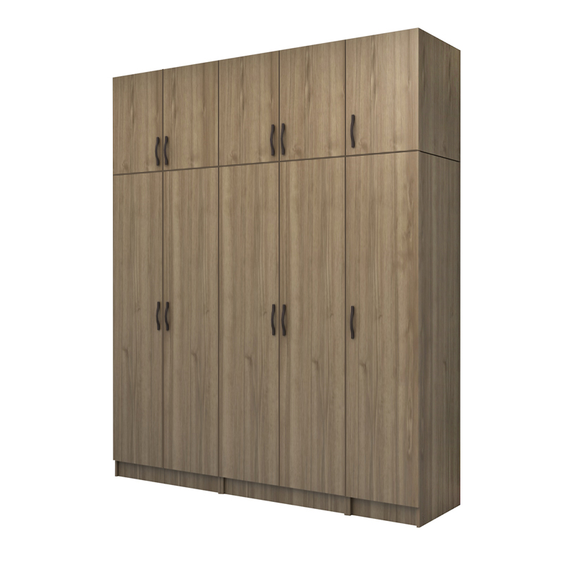 Ντουλάπα ρούχων Vivian Megapap πεντάφυλλη με πατάρι χρώμα καρυδί 200×51,8×240εκ.