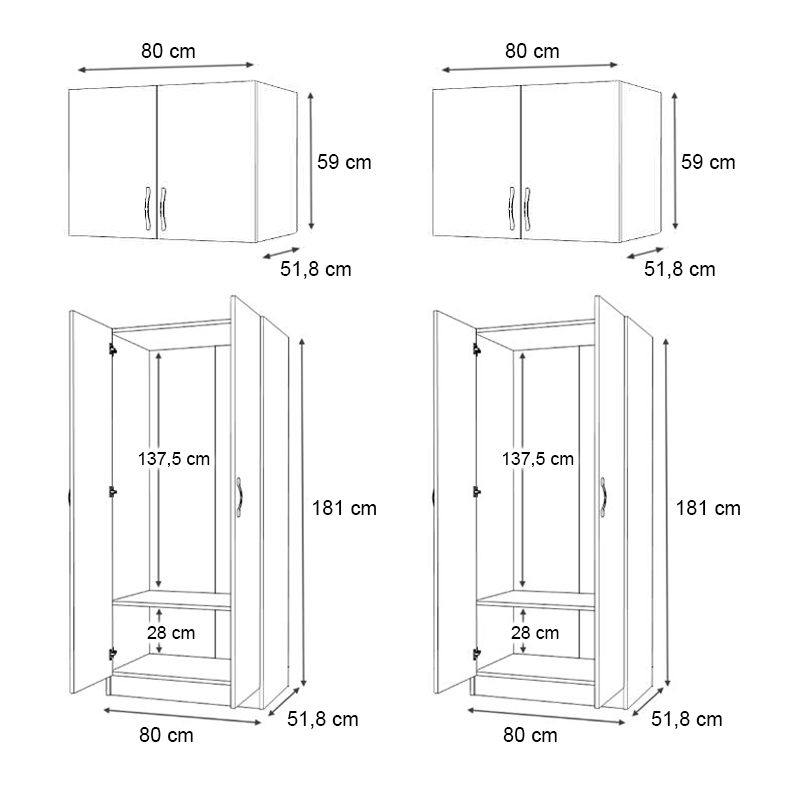 • Διαστάσεις ντουλάπας: Μήκος 160 x Βάθος 51,8 x Ύψος 181 εκ.