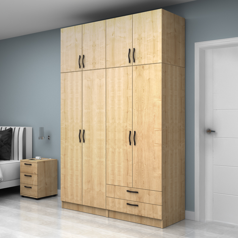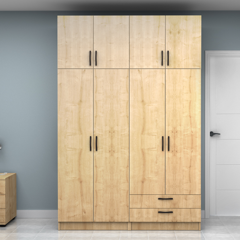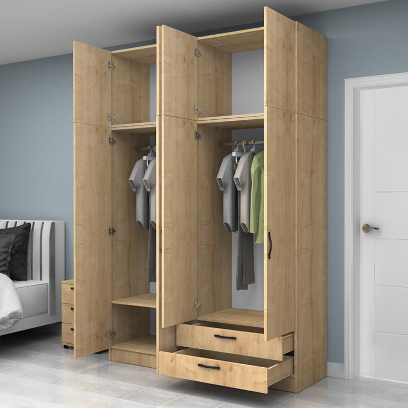 Ντουλάπα ρούχων Vivian Megapap τετράφυλλη με πατάρι και συρτάρια χρώμα φυσικό οξιάς 160×51,8×240εκ.