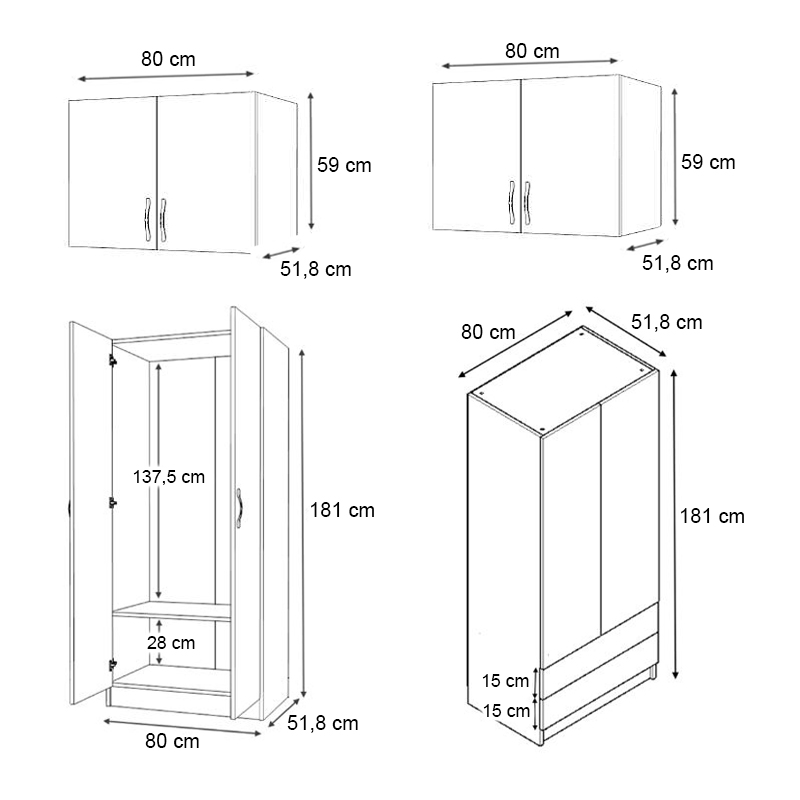 - Διαστάσεις ντουλάπας: Μήκος 160 x Βάθος 51,8 x Ύψος 181 εκ.