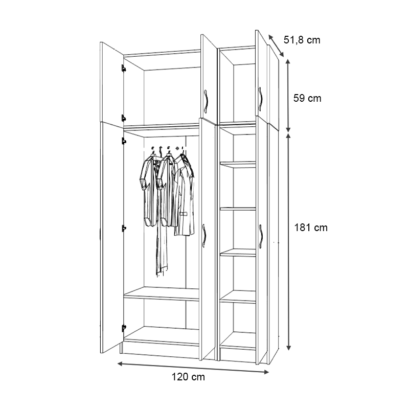 - Διαστάσεις δίφυλλης ντουλάπας: Μήκος 80 x Βάθος 51,8 x Ύψος 181 εκ.